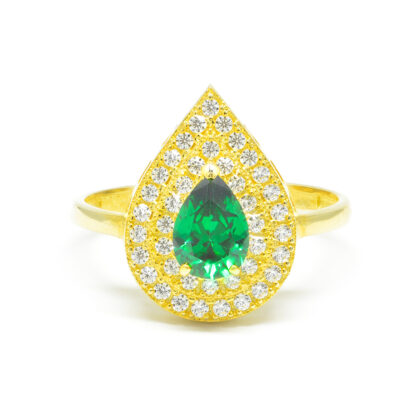 Δαχτυλίδι εντυπωσιακό σε σχήμα δάκρυ από κίτρινο χρυσό 14k με σμαραγδί πέτρα