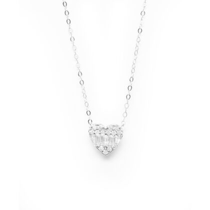 Κολλιέ με καρδιά από διαμάντια και baguettes από λευκόχρυσο