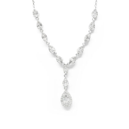 Κολλιέ elegant με διαμάντια και baguettes από λευκόχρυσο