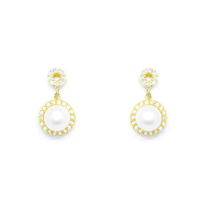 Σκουλαρίκια elegant κρεμαστά με natural pearls από κίτρινο χρυσό 14k