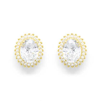Σκουλαρίκια ροζέτες οβάλ με πέτρες από κίτρινο χρυσό 14k