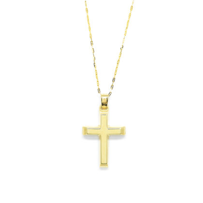 Σταυρός από κίτρινο χρυσό 14k με αλυσίδα.Πακέτο βάπτισης