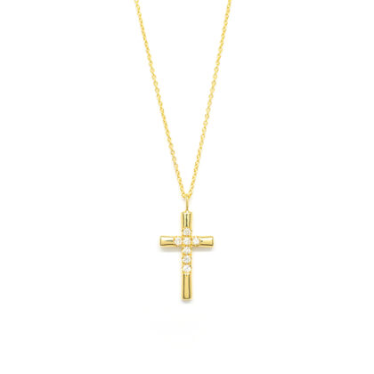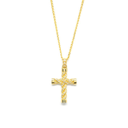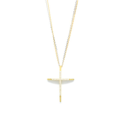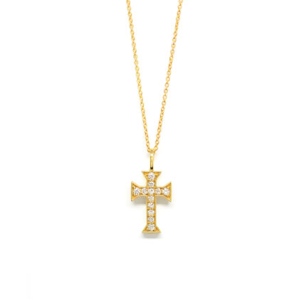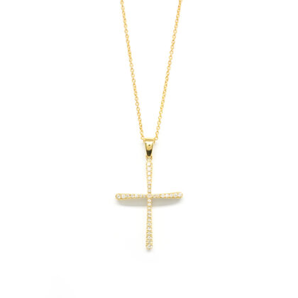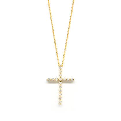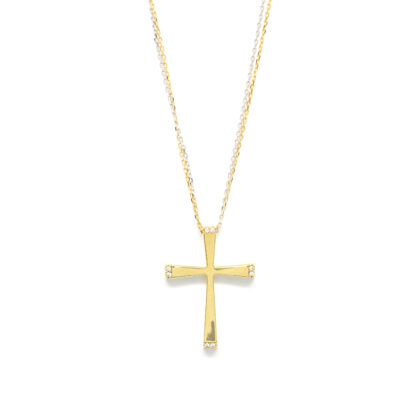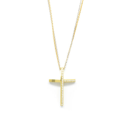 Σταυρός elegant με διαμάντια brilliant από κίτρινο χρυσό 18k με αλυσίδα