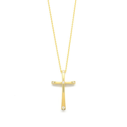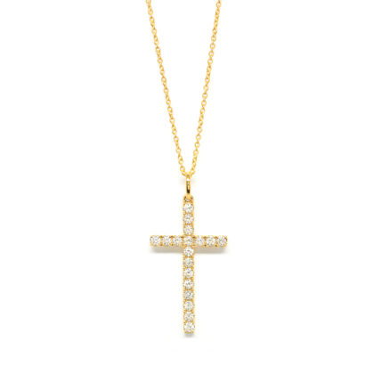 Σταυρός κλασσικός με διαμάντια brilliant από κίτρινο χρυσό 18k