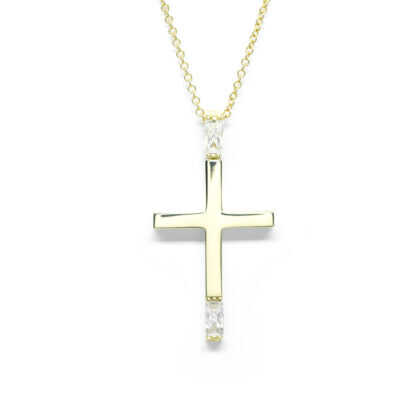 Σταυρός minimal από κίτρινο χρυσό 14k με carre zirgons