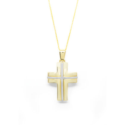 Σταυρός mirror effect από κίτρινο χρυσό 14k με zirgons