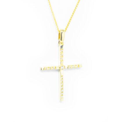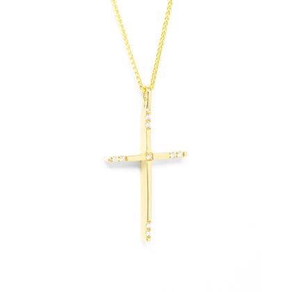 Σταυρός κλασσικός με διαμάντια brilliant και baguette και κίτρινο χρυσό 18k