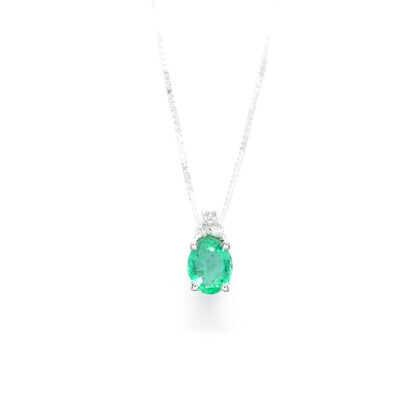 Κολλιέ από λευκόχρυσο 18k με μονόπετρο σμαράγδι και διαμάντι