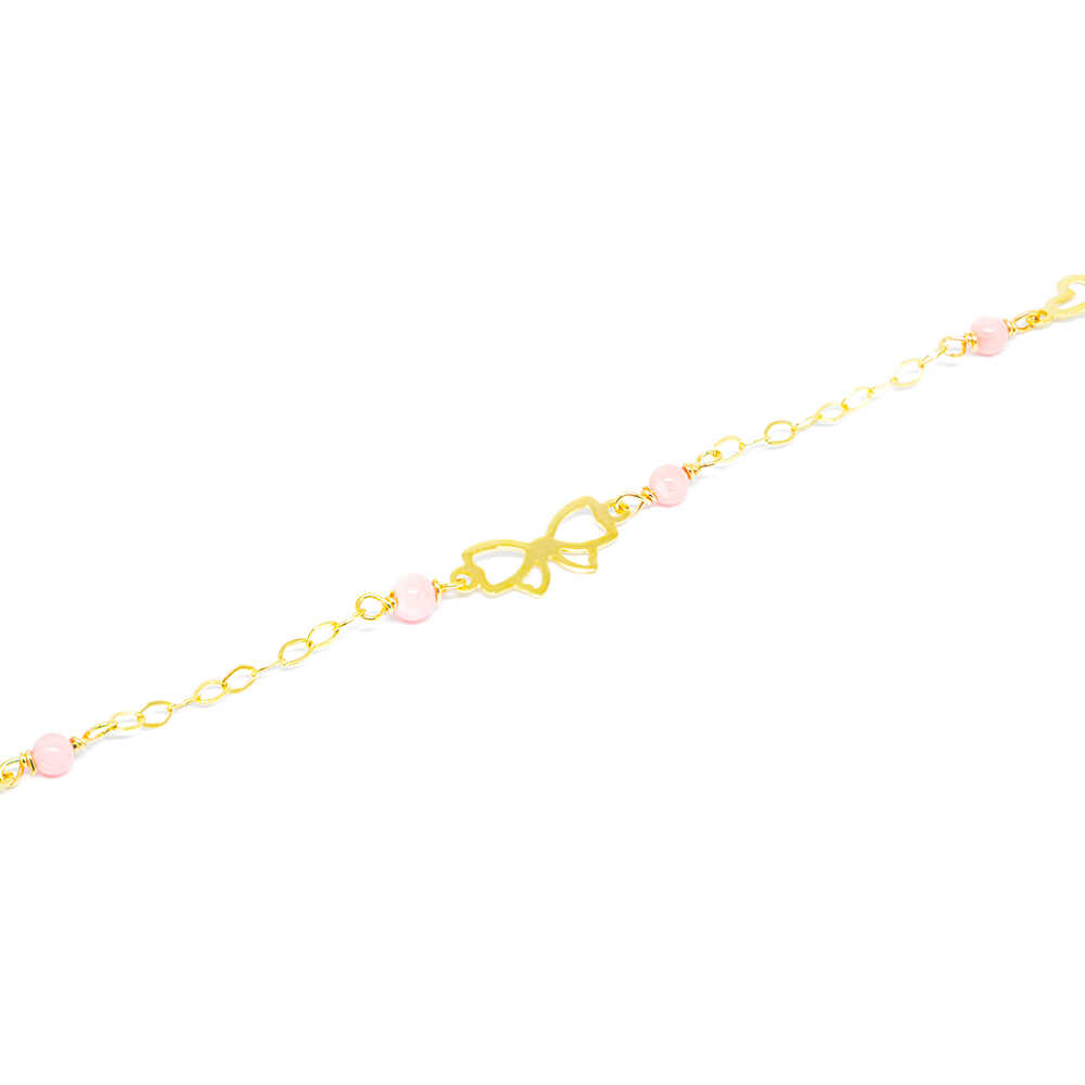 Βραχιόλι από κίτρινο χρυσό 14k με καρδιά και ροζ κοράλι