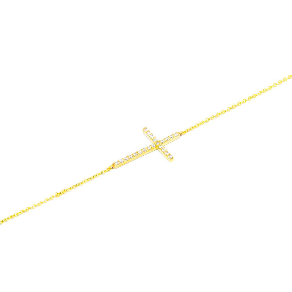 Βραχιόλι από κίτρινο χρυσό 14k με σταυρό με πέτρες