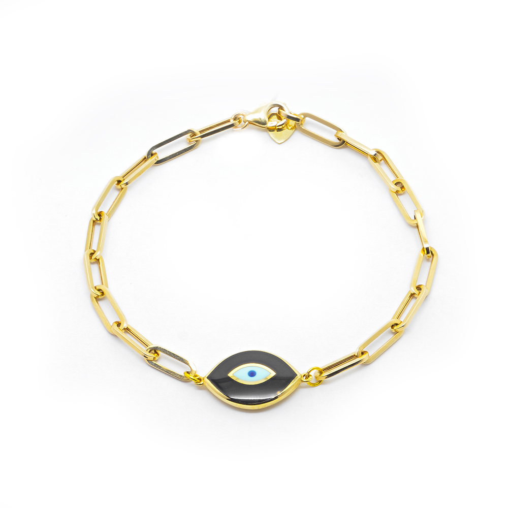 Βραχιόλι με μάτι από σμάλυο κι εντυπωσιακή αλυσίδα από κίτρινο χρυσό 14k