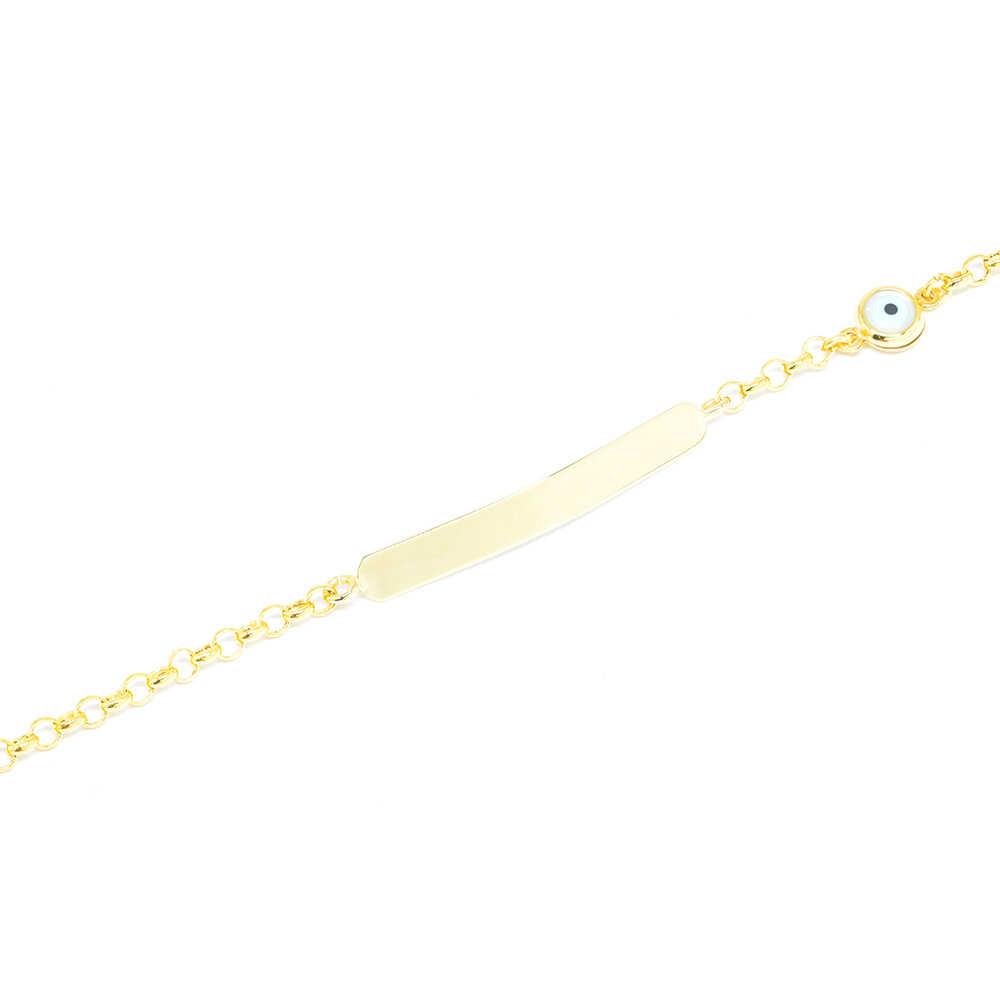 Βραχιόλι ταυτότητα από κίτρινο χρυσό 14k με μάτι