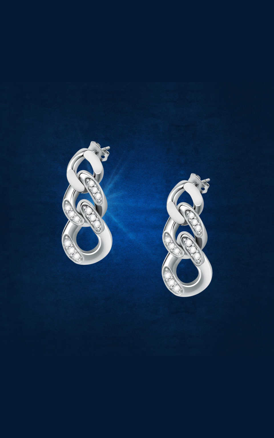 Η συλλογή από αλυσίδες BOSSY CHAIN με μαξιμαλιστική διάθεση και στιβαρές φόρμες είναι must-have.Η τάση είναι κίτρινος χρυσός και οι αλυσίδες Chiara Ferragni την υποστηρίζουν σε κάθε κολιέ και βραχιόλι, εμπλουτισμένες με κρυστάλλινες, λαμπερές λεπτομέρειες, αλλά και με ασημί σημεία που ζωντανεύουν κάθε εμφάνιση. Γυναικεία σκουλαρίκια ασημένιου χρώματος με σχέδιο αλυσίδα και διαφανείς πέτρες .Συνοδεύεται από κουτί συσκευασίας CHIARA FERRAGNI και ΕΓΓΥΗΣΗ 2 ΕΤΩΝ της επίσημης αντιπροσωπείας CHIARA FERRAGNI.