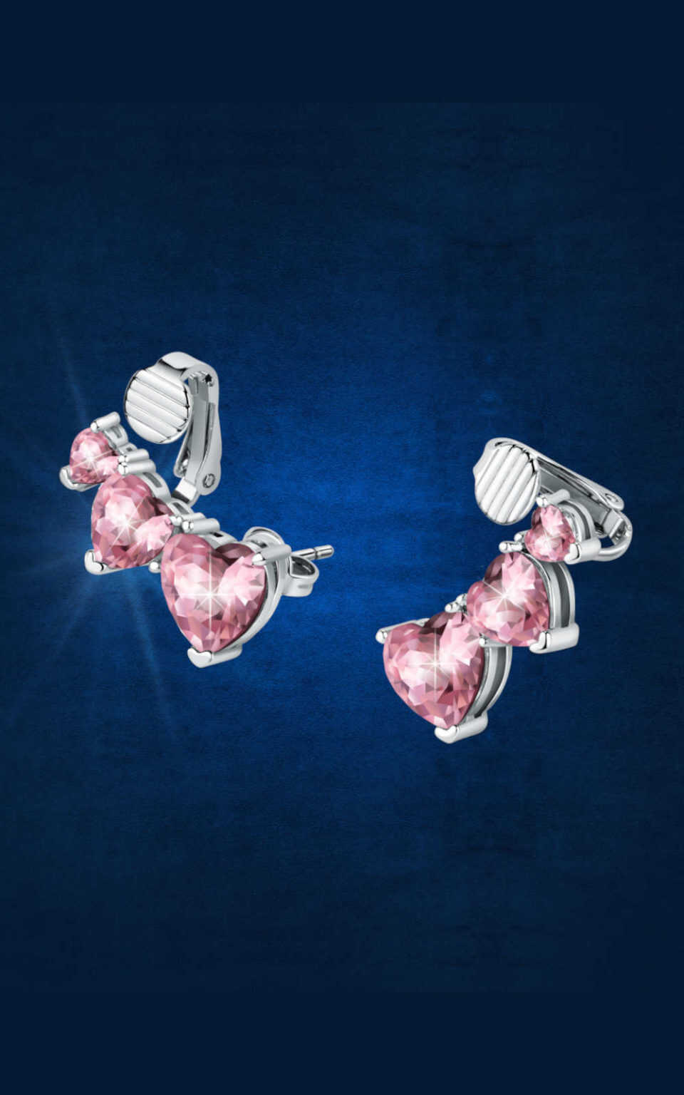 Σκουλαρίκια ασημένιου χρώματος με τριπλές ροζ καρδιές. Η Diamond Heart Collection αποπνέει τον ρομαντισμό που χαρακτηρίζει τη μάρκα. Κυβόσχημες καρδιές από ζιργκόν στο μπλε του ζαφειριού, το σμαραγδί και σε νεραϊδένιες ροζ αποχρώσεις, επαναλαμβάνονται σε όλα τα κομψά κολιέ, βραχιόλια, σκουλαρίκια και δαχτυλίδια της συλλογής. Συνοδεύεται από κουτί συσκευασίας CHIARA FERRAGNI και ΕΓΓΥΗΣΗ 2 ΕΤΩΝ της επίσημης αντιπροσωπείας CHIARA FERRAGNI.