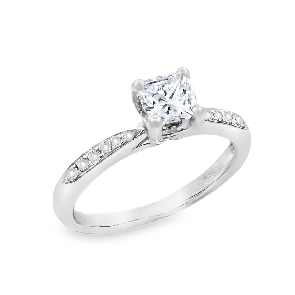 Δαχτυλίδι διαμαντένιο μονόπετρο από λευκόχρυσο 18k με διαμάντια στα πλαινά