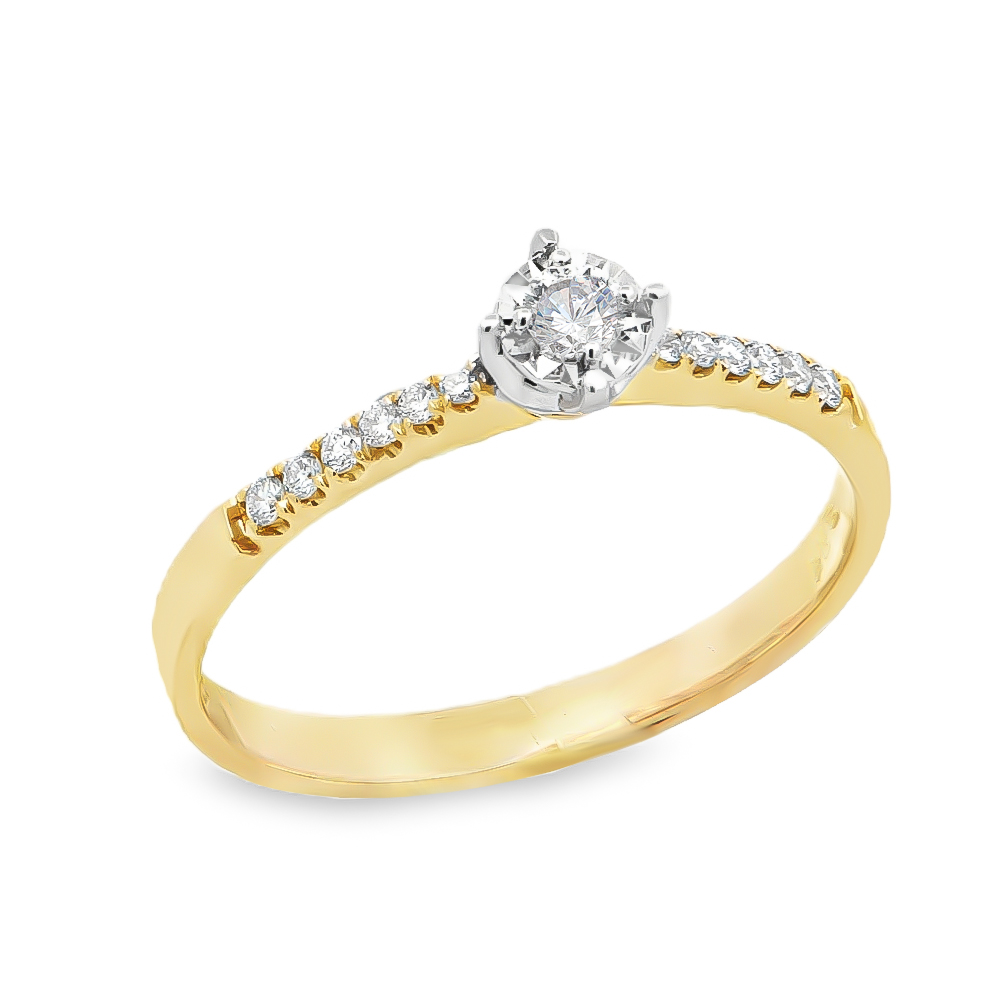 Δαχτυλίδι διαμαντένιο μονόπετρο εντυπωσιακό από κίτρινο χρυσό 18k με διαμάντια στα πλαινά