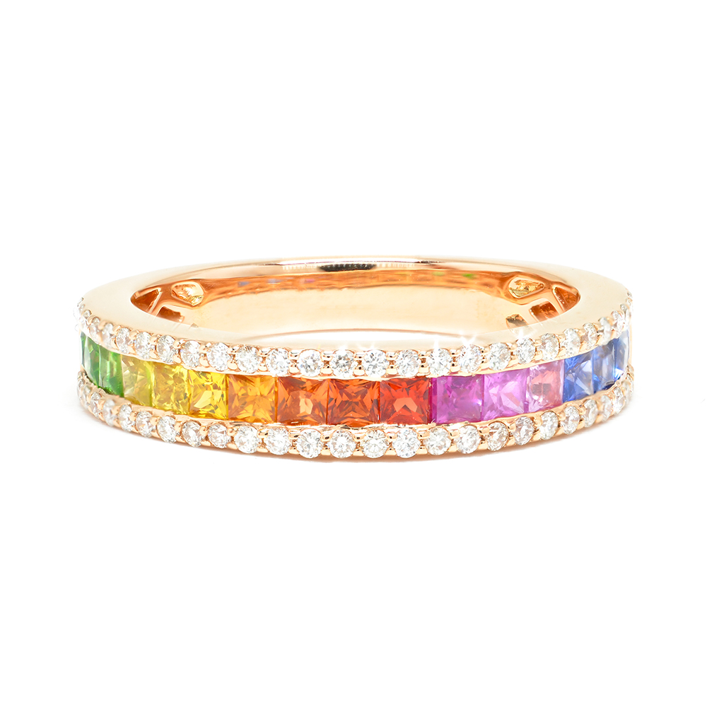 Δαχτυλίδι διαμαντένιο σειρέ με χρωματιστά ζαφείρια από ροζ χρυσό 18k