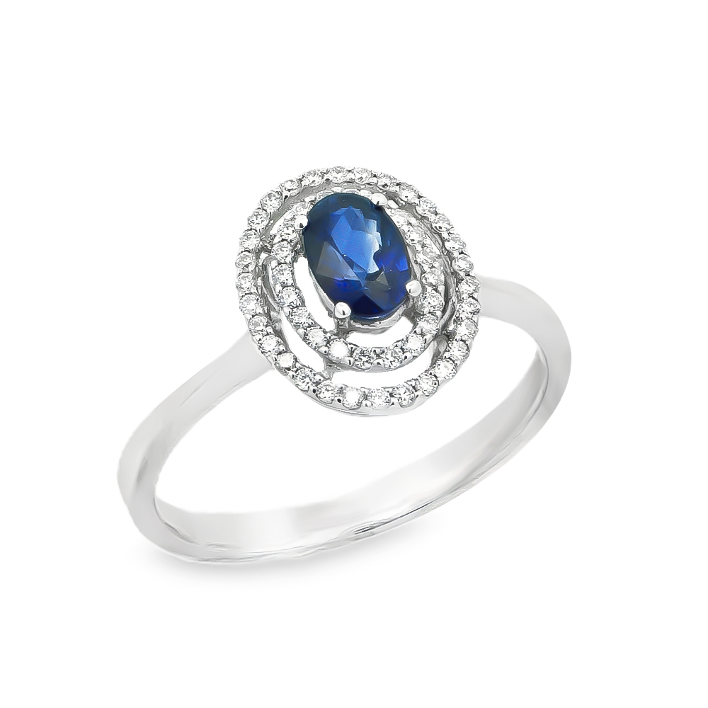 Δαχτυλίδι εντυπωσιακό με ζαφείρι σε oval shape και διαμάντια από λευκόχρυσο 18k