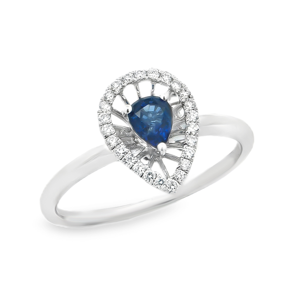 Δαχτυλίδι εντυπωσιακό με ζαφείρι σε pear shape και διαμάντια από λευκόχρυσο 18k