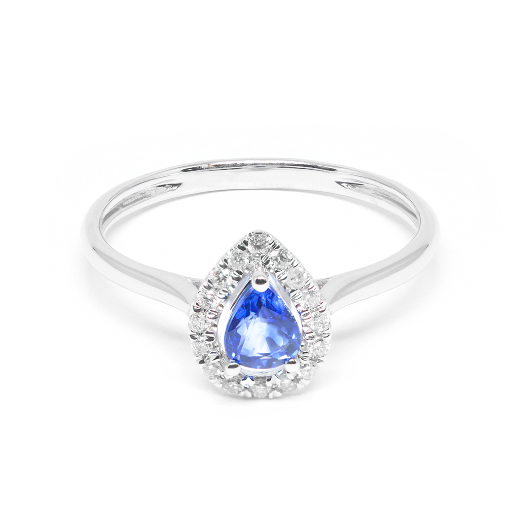 Δαχτυλίδι εντυπωσιακό με ζαφείρι pear shape και διαμάντια από λευκόχρυσο 18k