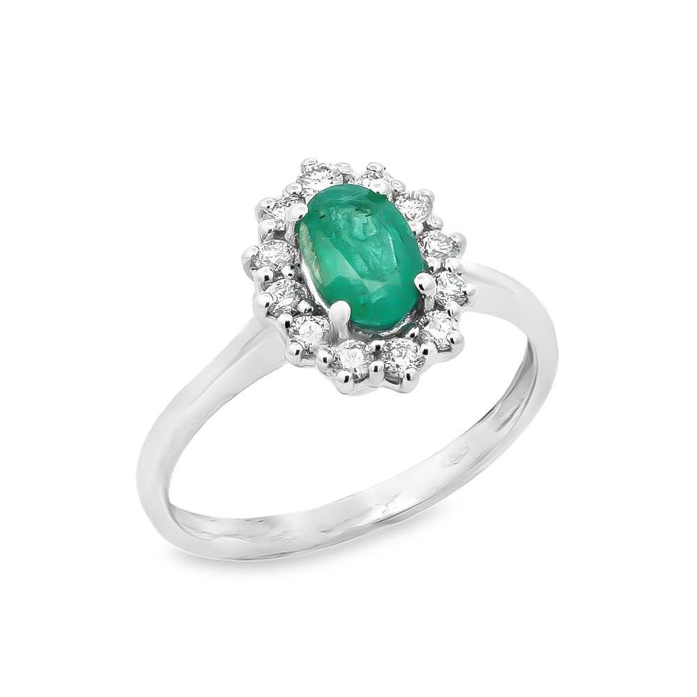 Δαχτυλίδι εντυπωσιακό με σμαράγδι σε oval shape και διαμάντια από λευκόχρυσο 18k