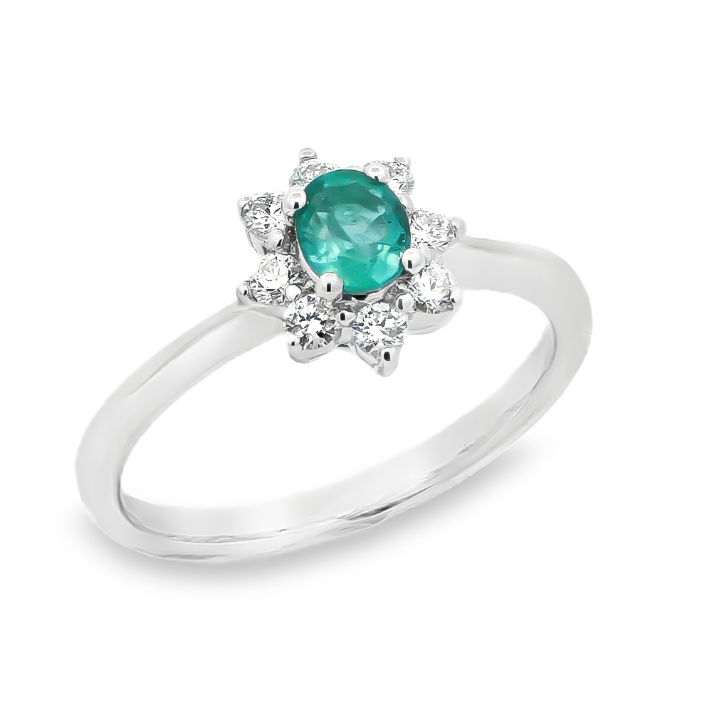 Δαχτυλίδι εντυπωσιακό με σμαράγδι σε oval shape και διαμάντια από λευκόχρυσο 18k