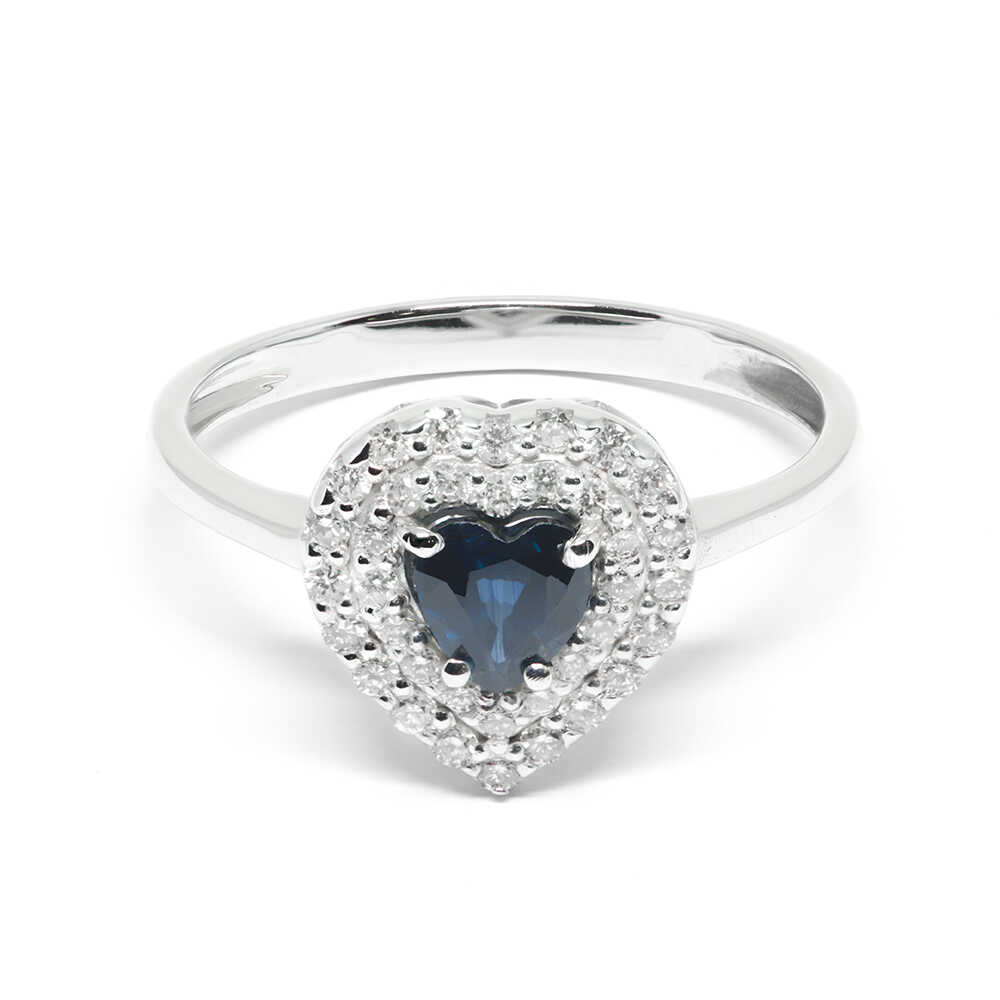 Δαχτυλίδι εντυπωσιακό σε σχήμα καρδιάς με ζαφείρι heart shape και διαμάντια από λευκόχρυσο 18k