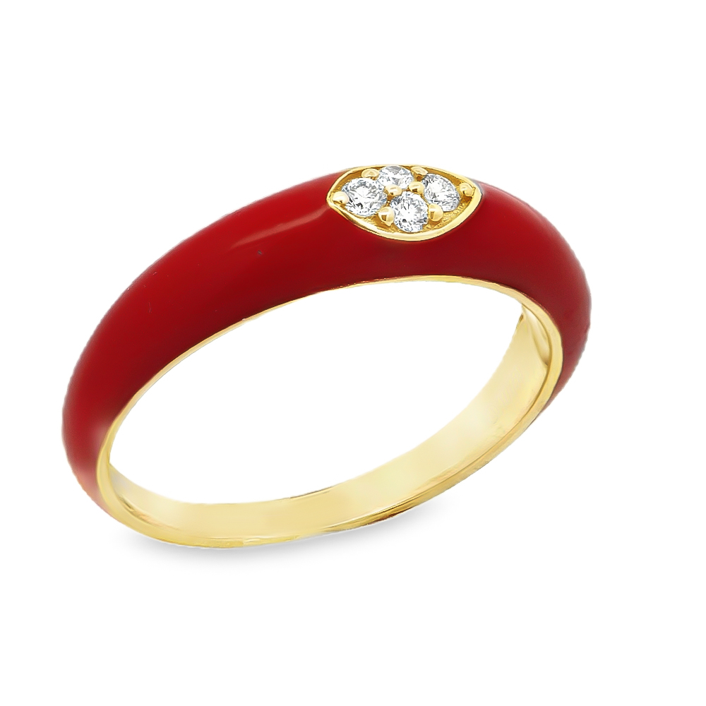 Δαχτυλίδι με κόκκινο σμάλτο και διαμάντι από Χρυσό 18k