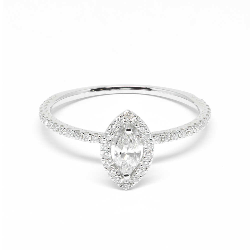 Δαχτυλίδι μονόπετρο διαμαντένιο κομψό σε σχήμα navette από λευκόχρυσο 18k