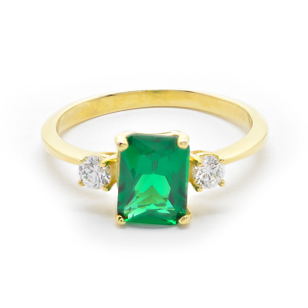 Δαχτυλίδι ροζέτα με μπλέ πέτρα emerald και cubic zirgons