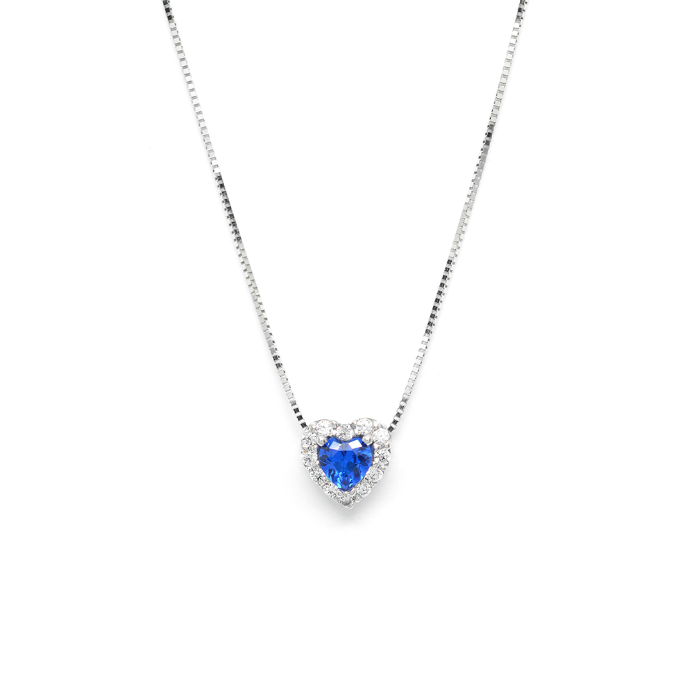 Κολλιέ από χρυσό 14k με λαμπερή καρδιά και μπλέ πέτρα