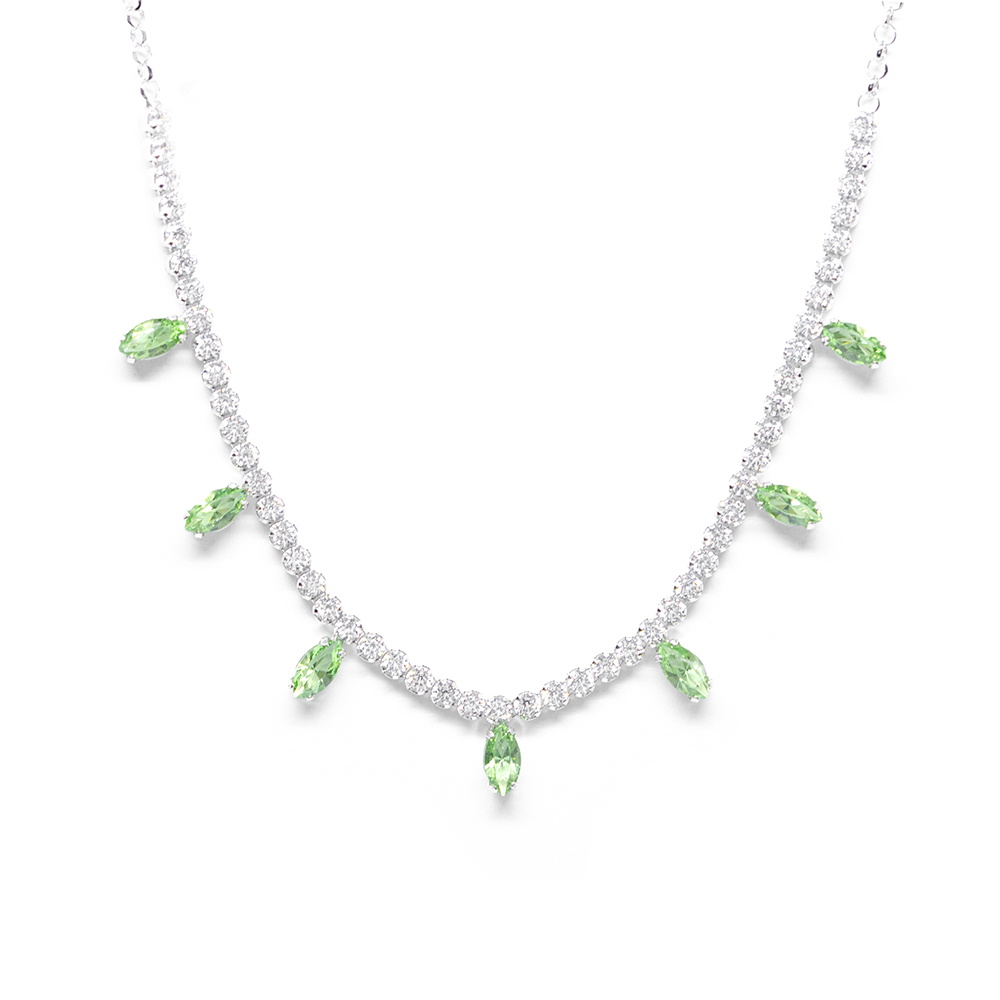 Κολλιέ ασημένιο glam chic με πράσινα swarofski crystals