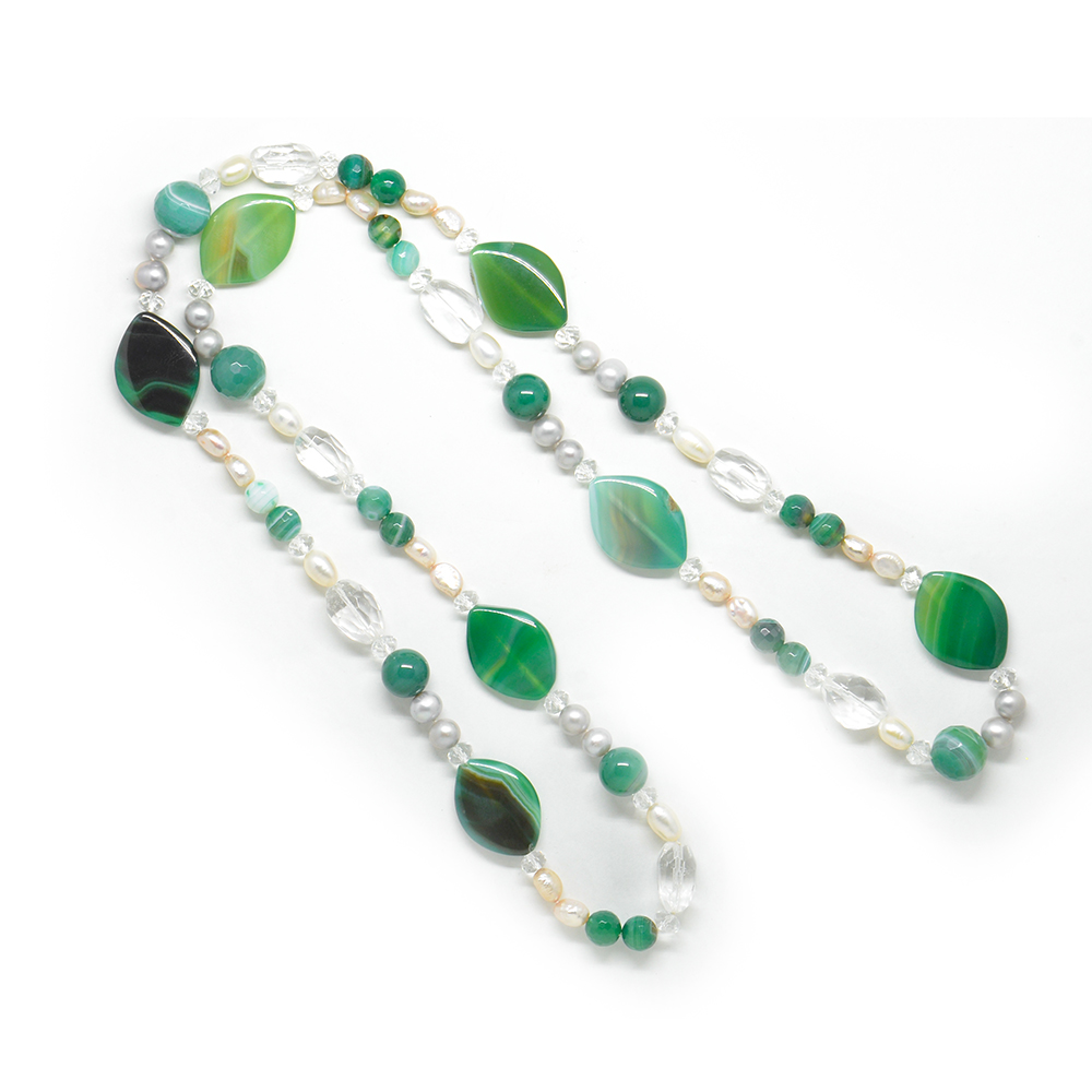 Κολλιέ μακρύ ''chanel'' με μαργαριτάρι και green agate