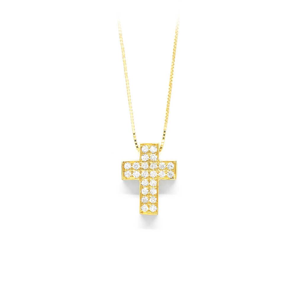Κολλιέ με σταυρό από κίτρινο χρυσό 18k με διαμάντια