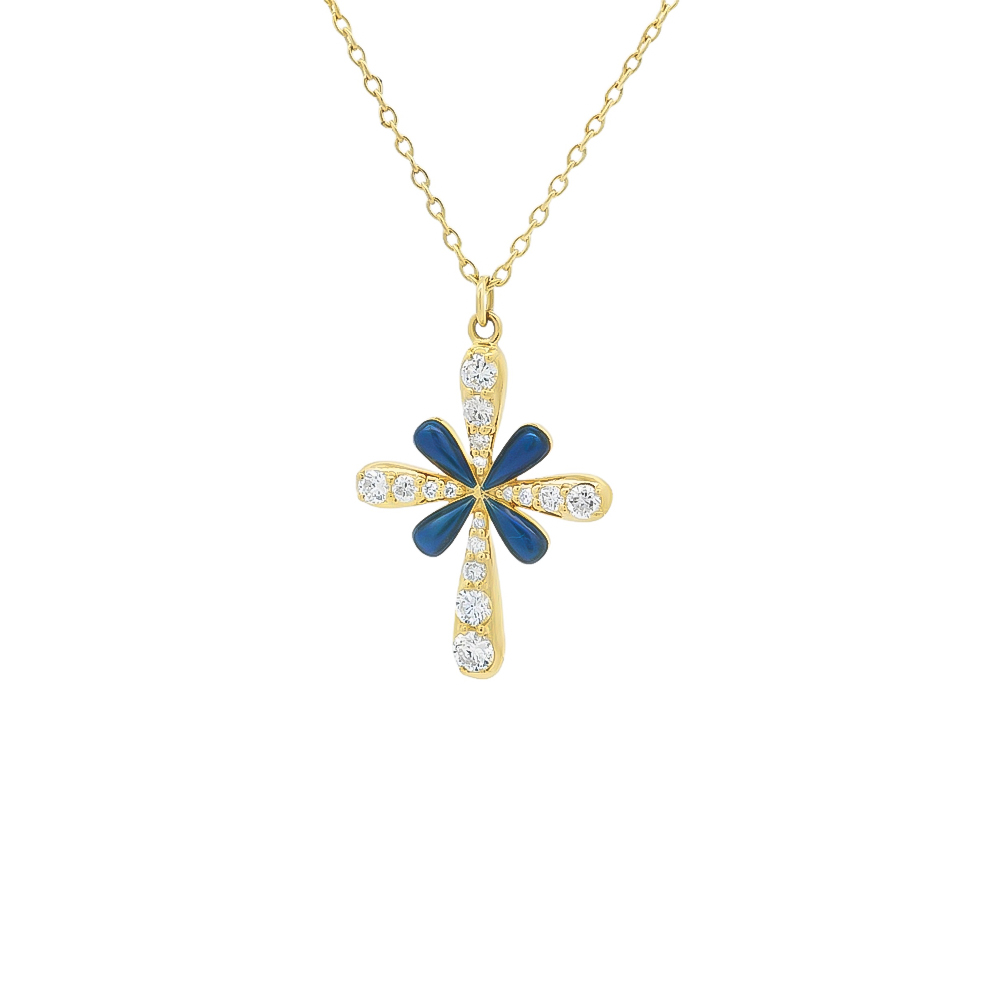 Κολλιέ με σταυρό διαμαντένιο και μπλε σμάλτο από χρυσό 18k