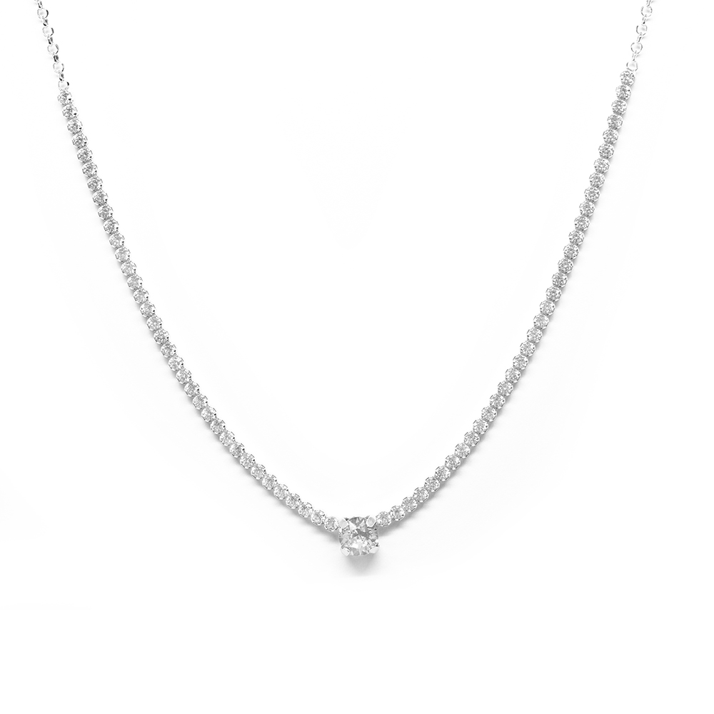 Κολλιέ μοντέρνα ασημένα ριβιέρα με μονόπετρο