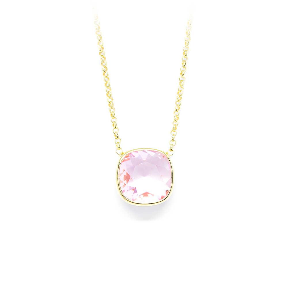 Κολλιέ χρυσό κομψό με ροζ πέτρα