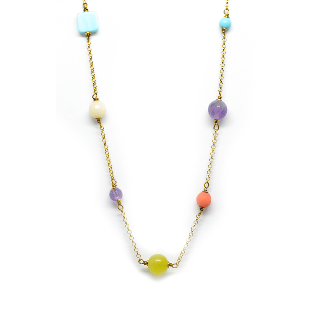 Κολλιέ χρυσό με αλυσίδα και πέτρες multicoloured