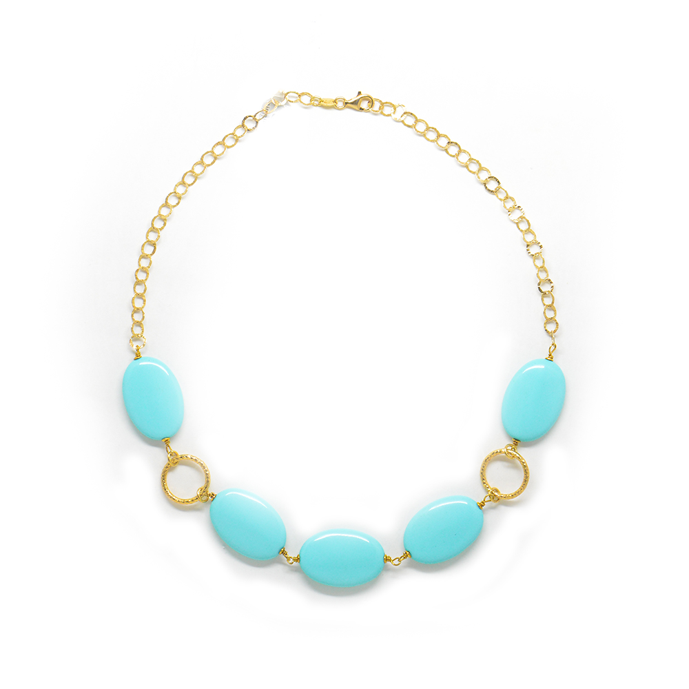 Κολλιέ χρυσό με αλυσίδα και τυρκουάζ