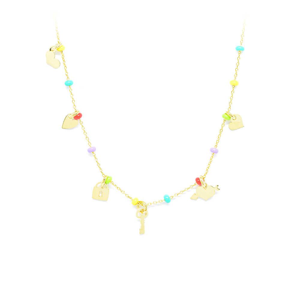 Κολλιέ χρυσό με καρδιές και χρωματιστές πέτρες