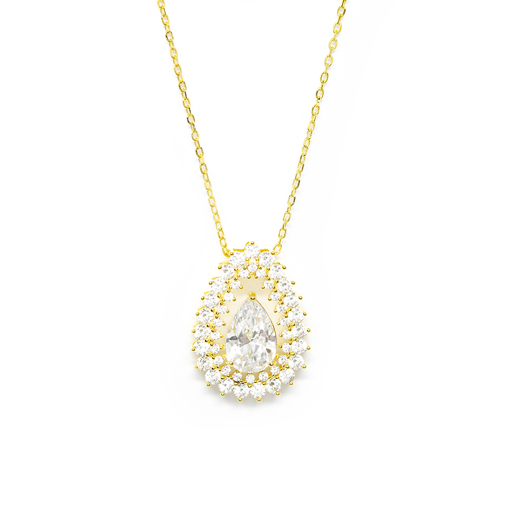 Κολλιέ χρυσό glam chic με εντυπωσιακή ροζέτα σε pear shape