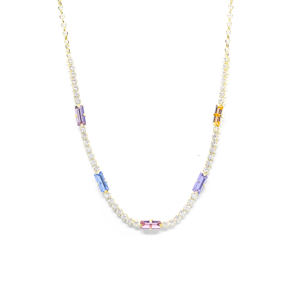 Κολλιέ χρυσό glam chic με rainbow swarofski crystals