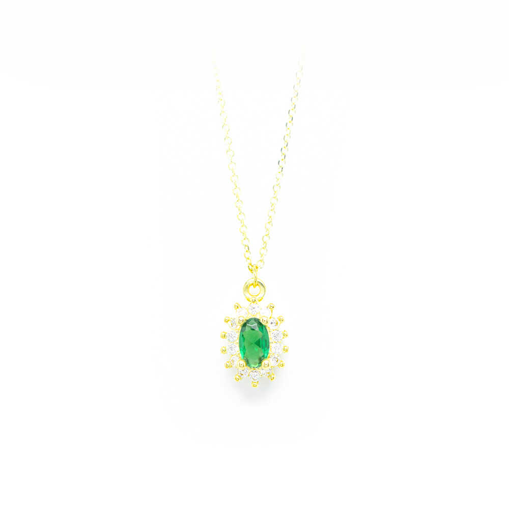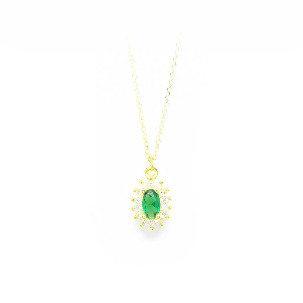 Κολλιέ elegant από κίτρινο χρυσό 14k με πράσινη ροζέτα