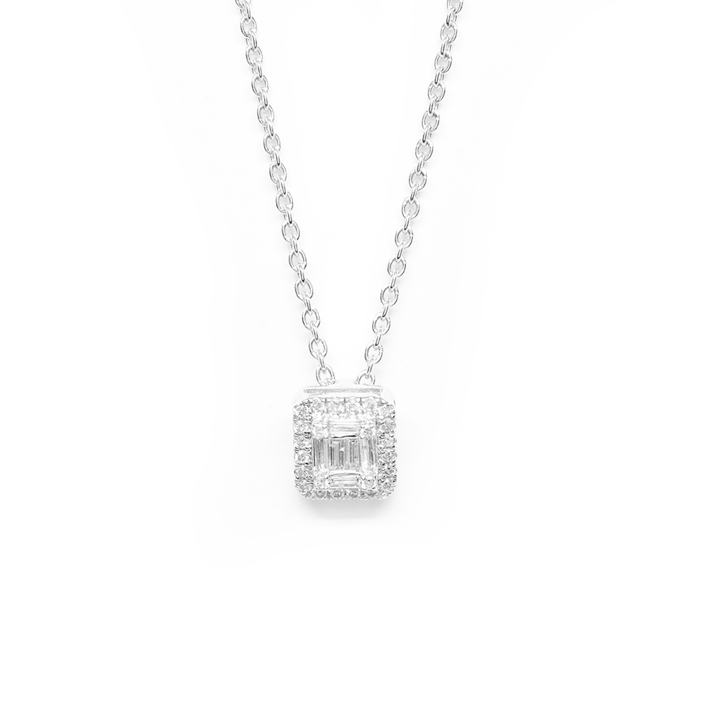 Κολλιέ elegant με διαμάντια και baguettes από λευκόχρυσο