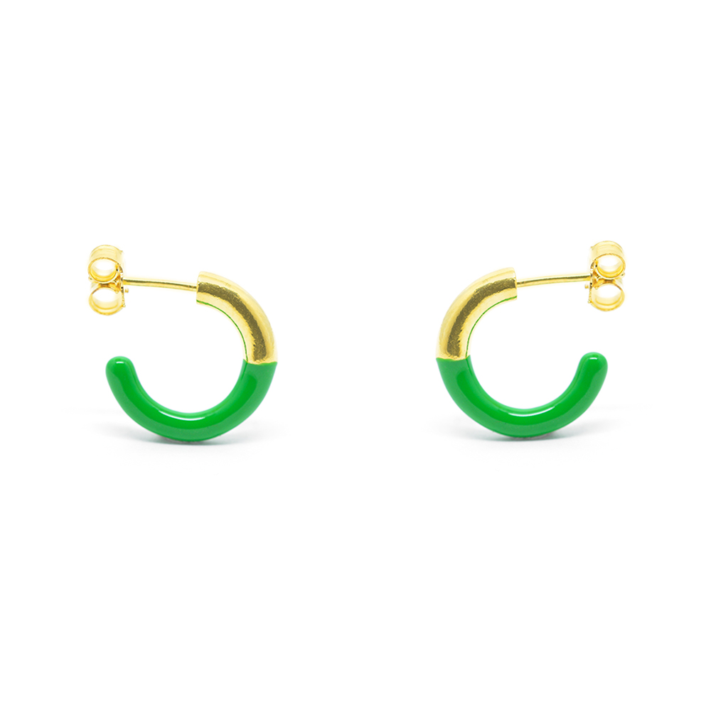 Σκουλαρίκια κρίκοι Χρυσοί με πράσινο σμάλτο