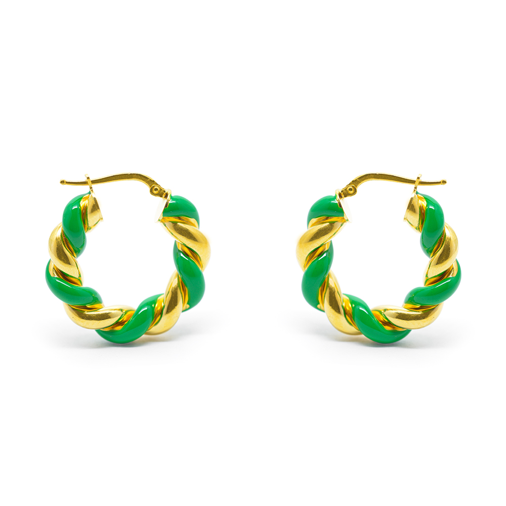 Σκουλαρίκια κρίκοι Χρυσοί στριφτοί με πράσινο σμάλτο