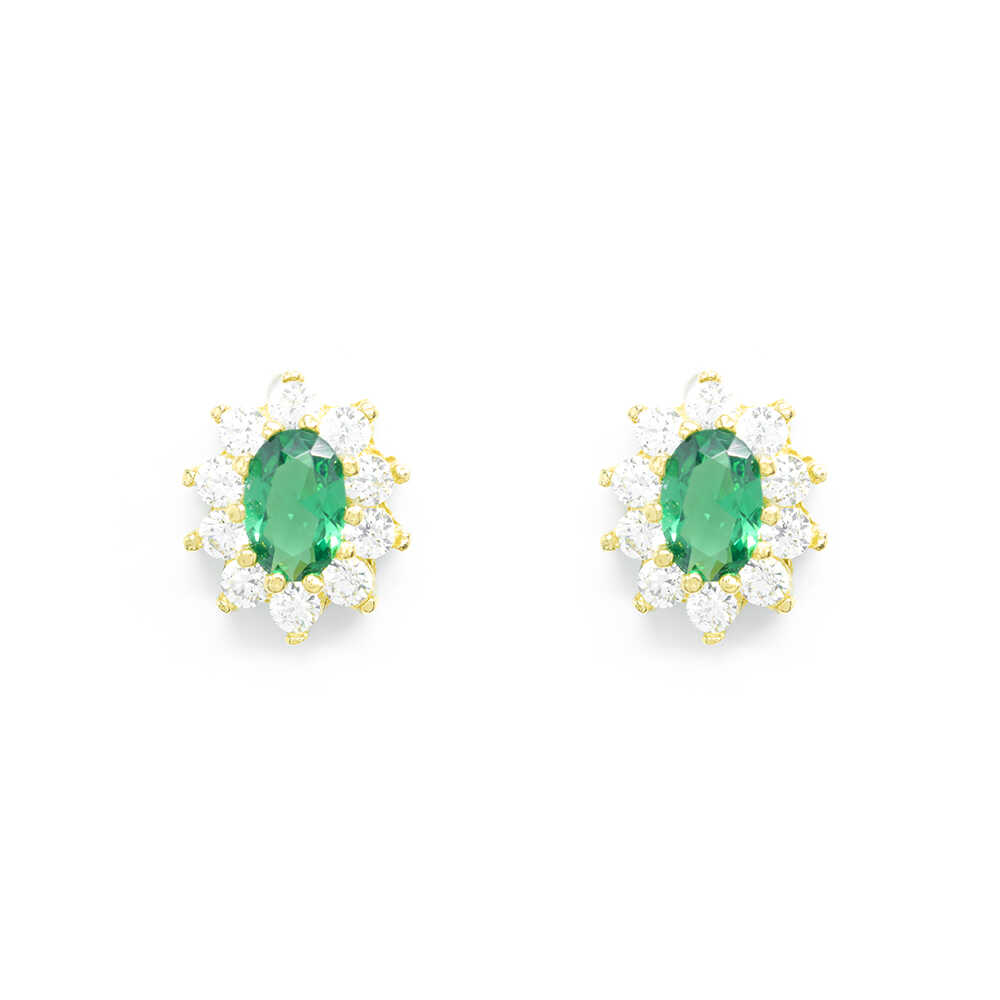 Σκουλαρίκια ροζέτες με πράσινο zirgon από κίτρινο χρυσό 14k
