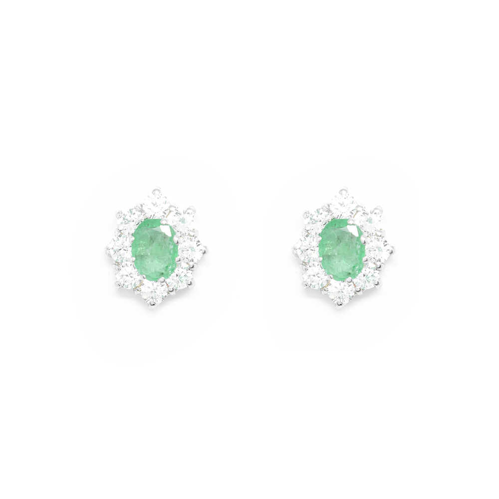 Σκουλαρίκια ροζέτες με πράσινο zirgon από λευκόχρυσο 14k