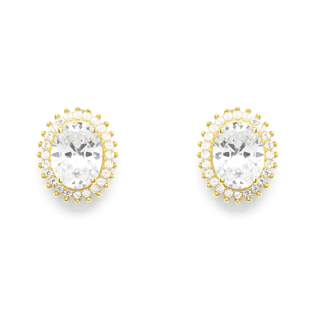 Σκουλαρίκια ροζέτες με oval zirgon από κίτρινο χρυσό 14k