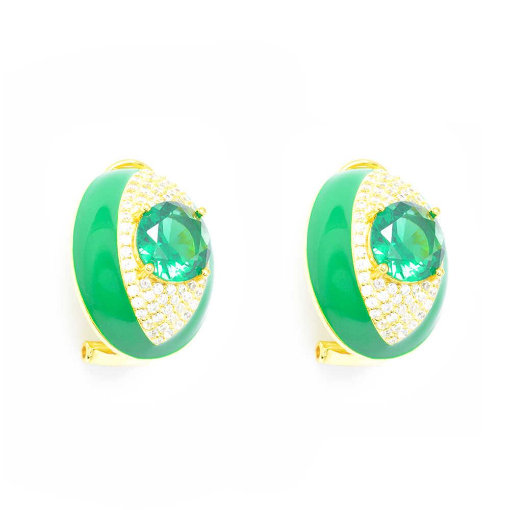 Σκουλαρίκια χρυσά με πράσινο σμάλτο